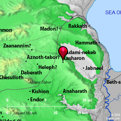 Atlas ![]() Lasharon and surrounding area Maps Created using Biblemapper 3.0 Additional data from OpenBible.info You are free to use up to 50 Biblos coprighted maps (small or large) for your website or presentation. Please credit Biblos.com. Occurrences Joshua 12:18 the king of Aphek, one; the king of Lassharon, one;Encyclopedia LASSHARONla-sha'-ron, la-shar'-on (lashsharon or la-sharon, the King James Version Sharon): A royal city of the Canaanites taken by Joshua, named with Aphek (Joshua 12:18). Possibly we should here follow the reading of Septuagint (Codex Vaticanus), "the king of Aphek in Sharon." Eusebius, Onomasticon (s.v. "Saron") mentions a region between Mt. Tabor and the Lake of Tiberias called Sarona. This is probably represented by the ancient site Sarona, on the plateau 6 1/2 miles Southwest 2 of Tiberias. If Massoretic Text is correct, this may be the place intended. |