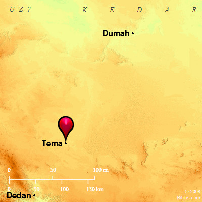 Atlas ![]() Tema and surrounding area Maps Created using Biblemapper 3.0 Additional data from OpenBible.info You are free to use up to 50 Biblos coprighted maps (small or large) for your website or presentation. Please credit Biblos.com. Occurrences Job 6:19 The caravans of Tema looked. The companies of Sheba waited for them.Isaiah 21:14 They brought water to him who was thirsty. The inhabitants of the land of Tema met the fugitives with their bread. Jeremiah 25:23 Dedan, and Tema, and Buz, and all who have the corners of their hair cut off; Encyclopedia TEMAte'-ma (tema', "south country"; Thaiman): The name of a son of Ishmael (Genesis 25:15 1 Chronicles 1:30), of the tribe descended from him (Jeremiah 25:23), and of the place where they dwelt (Job 6:19 Isaiah 21:14). This last was a locality in Arabia which probably corresponds to the modern Teima' (or Tayma' (see Doughty, Arabia Deserta, I, 285)), an oasis which lies about 200 miles North of el-Medina, and some 40 miles South of Dumat el-Jandal (Dumah), now known as el-Jauf. It is on the ancient caravan road connecting the Persian Gulf with the Gulf of Aqaba; and doubtless the people took a share in the carrying trade (Job 6:19). The wells of the oasis still attract the wanderers from the parched wastes (Isaiah 21:14). Doughty (loc. cit.) describes the ruins of the old city wall, some 3 miles in circuit. An Aramaic stele recently discovered, belonging to the 6th century B.C., shows the influence of Assyrian article The place is mentioned in the cuneiform inscriptions (Schrader, KAT2, 149). |
