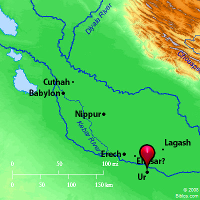 The most generally-accepted theory at the present time is that Ur is to be identified with the modern Mugheir (or Mughayyar, "the pitchy") in Southern Babylonia, called Urumma, or Urima, and later Uru in the inscriptions. This borders on the district which in the 1st millennium B.C. was called Chaldea (Kaldu).